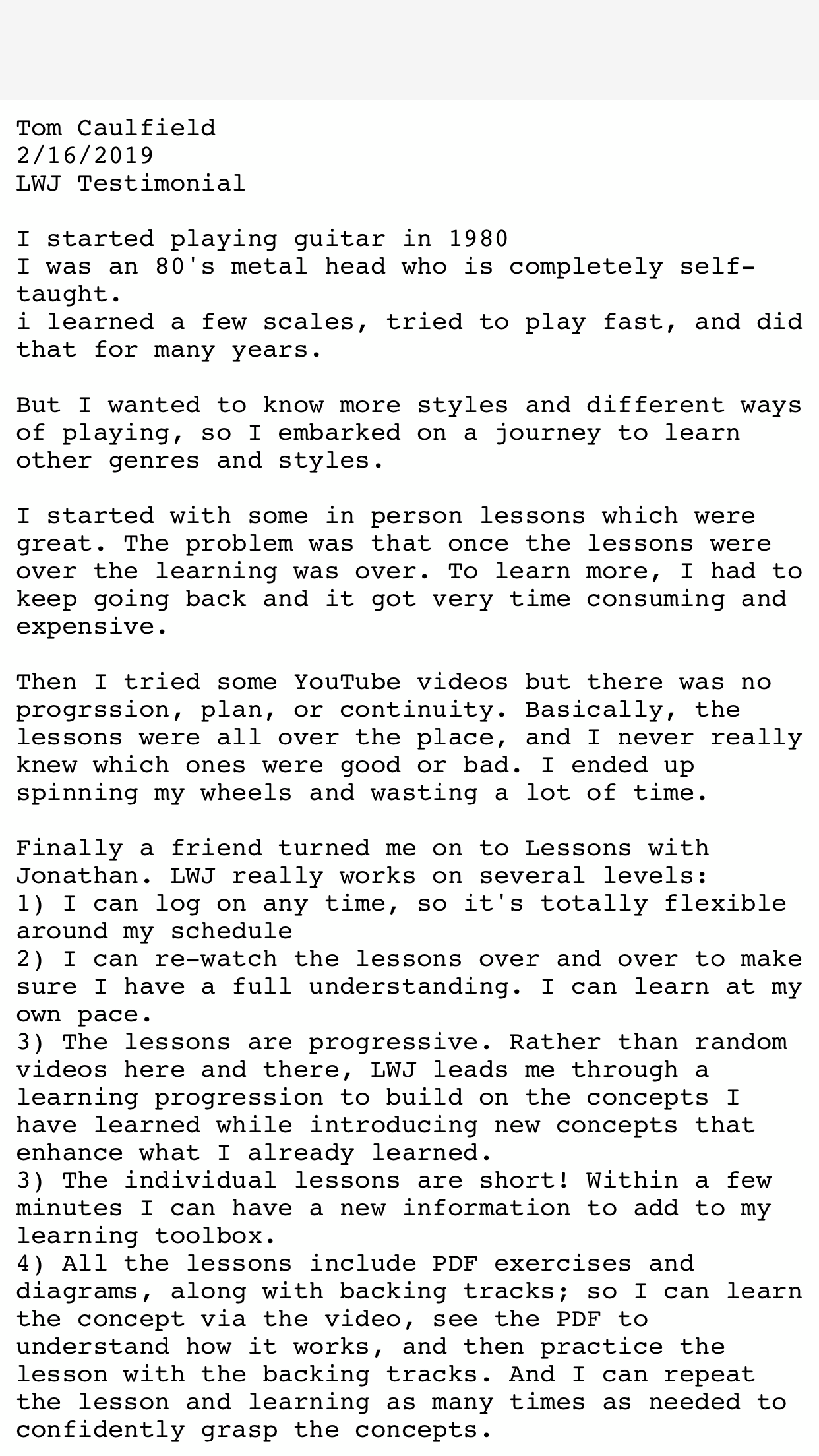Receive downloads of every pattern, scale and solo taught in the program, so you can...